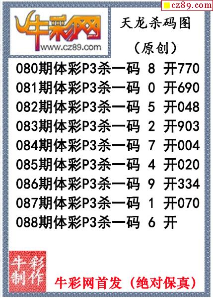 天龙杀码088期体彩P3图谜(原创)